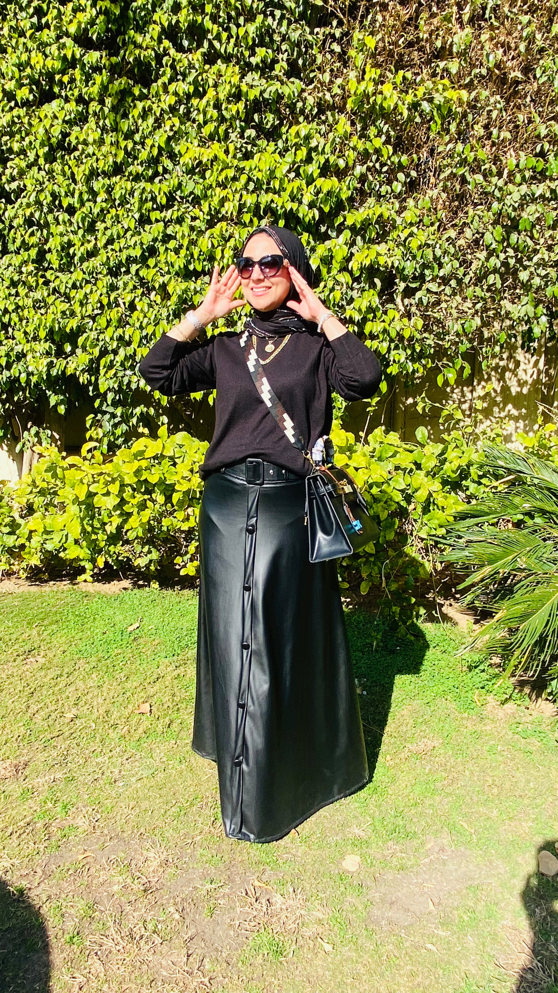 Belted leather Black Skirt